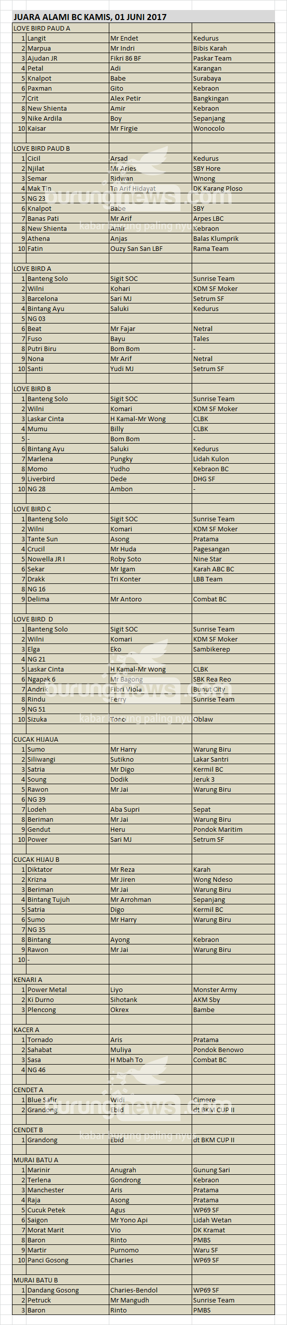 Judul : JUARA ALAMI BC KAMIS, 1 Juni 2017