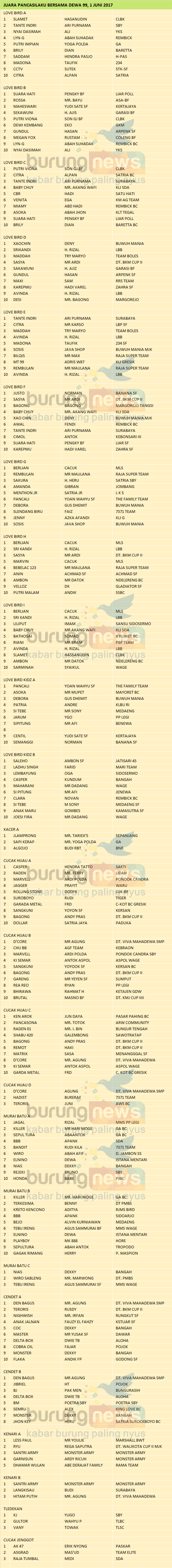 Hasil Lomba Burung