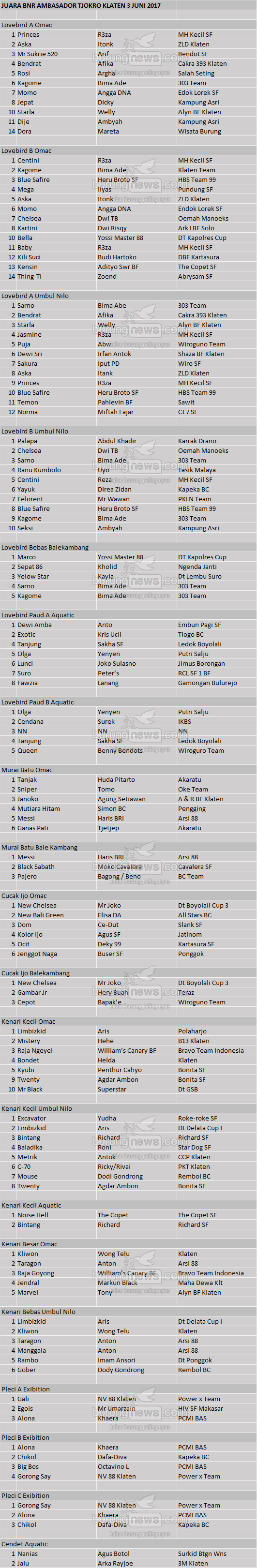 Hasil Lomba Burung