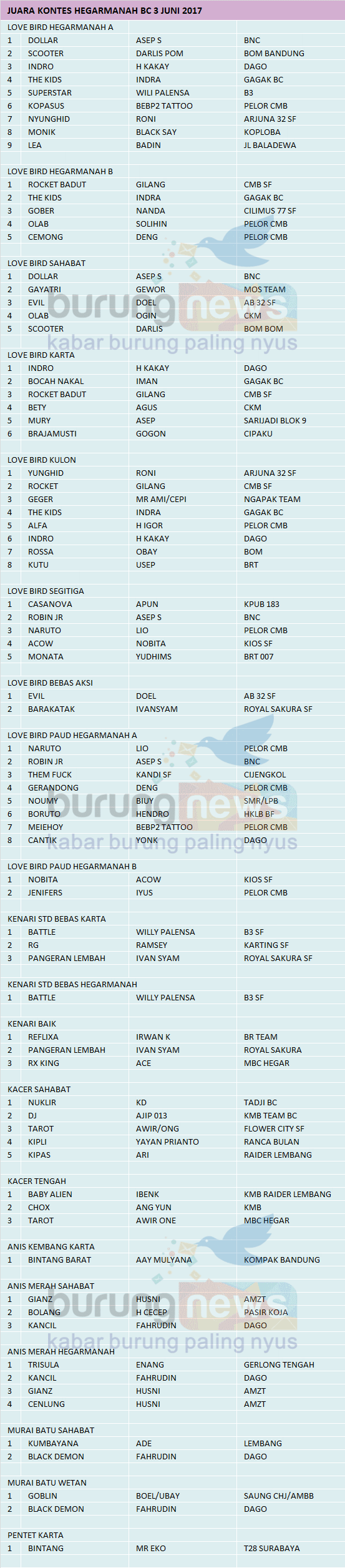 Hasil Lomba Burung