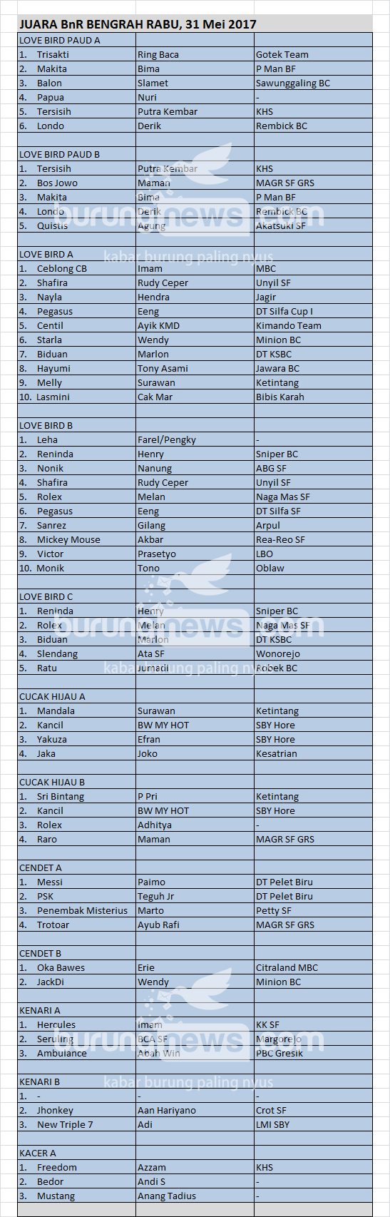 Hasil Lomba Burung