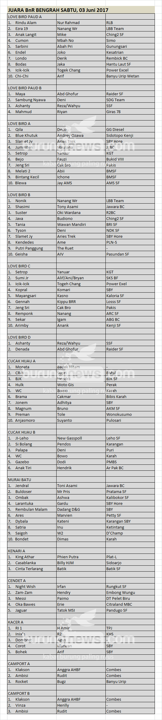 Judul : JUARA BnR BENGRAH SABTU, 3 JUNI 2017