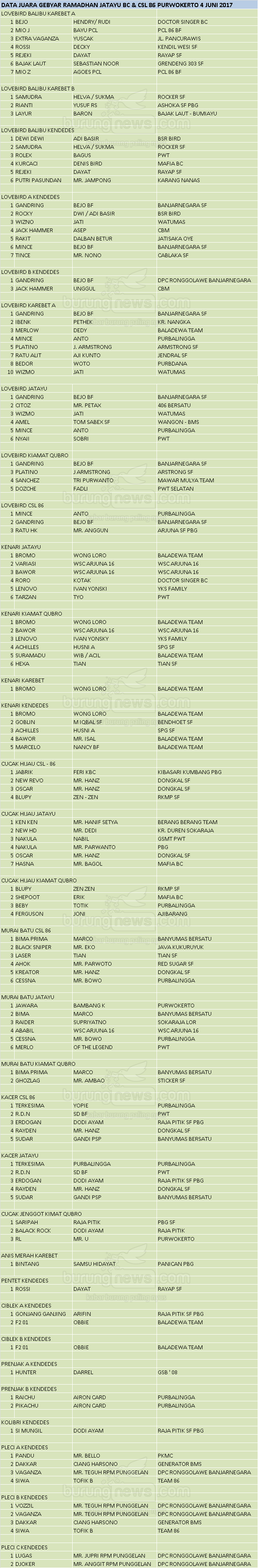 Hasil Lomba Burung