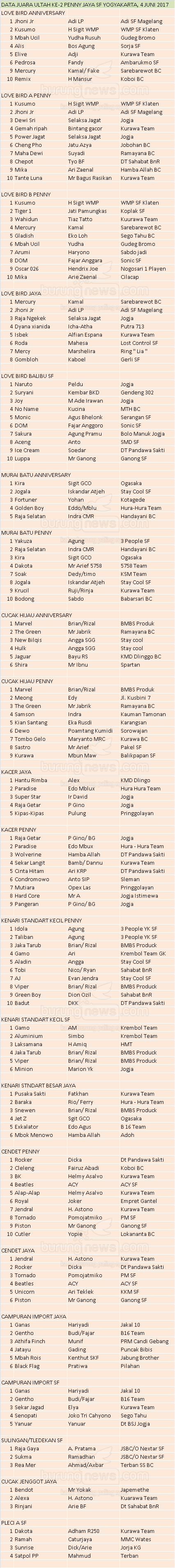 Hasil Lomba Burung