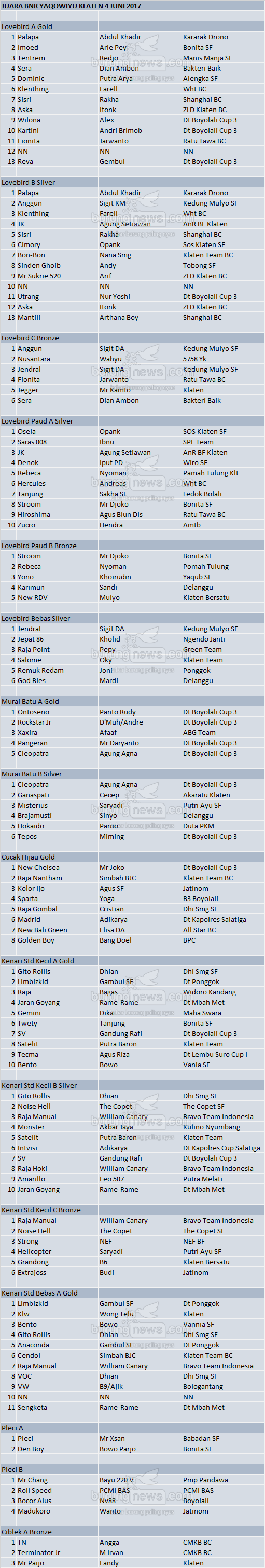 Judul : JUARA BNR YAQOWIYU KLATEN 4 JUNI 2017
