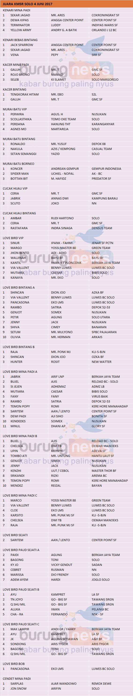 Hasil Lomba Burung