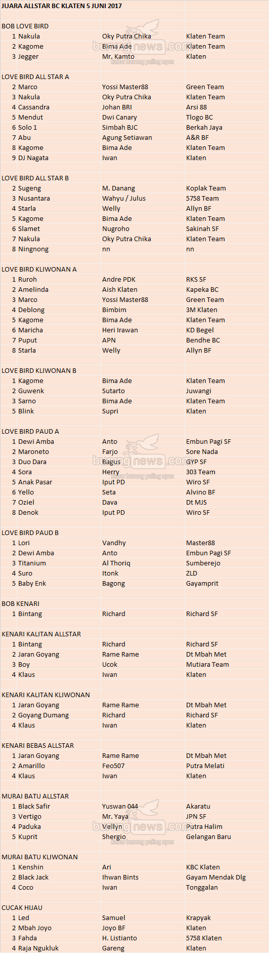 Hasil Lomba Burung