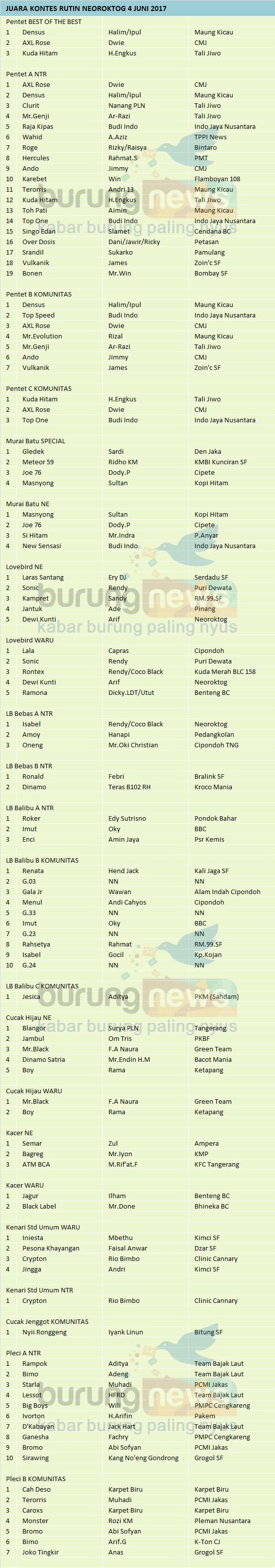 Judul : JUARA KONTES RUTIN NEOROKTOG, 4 JUNI 2017