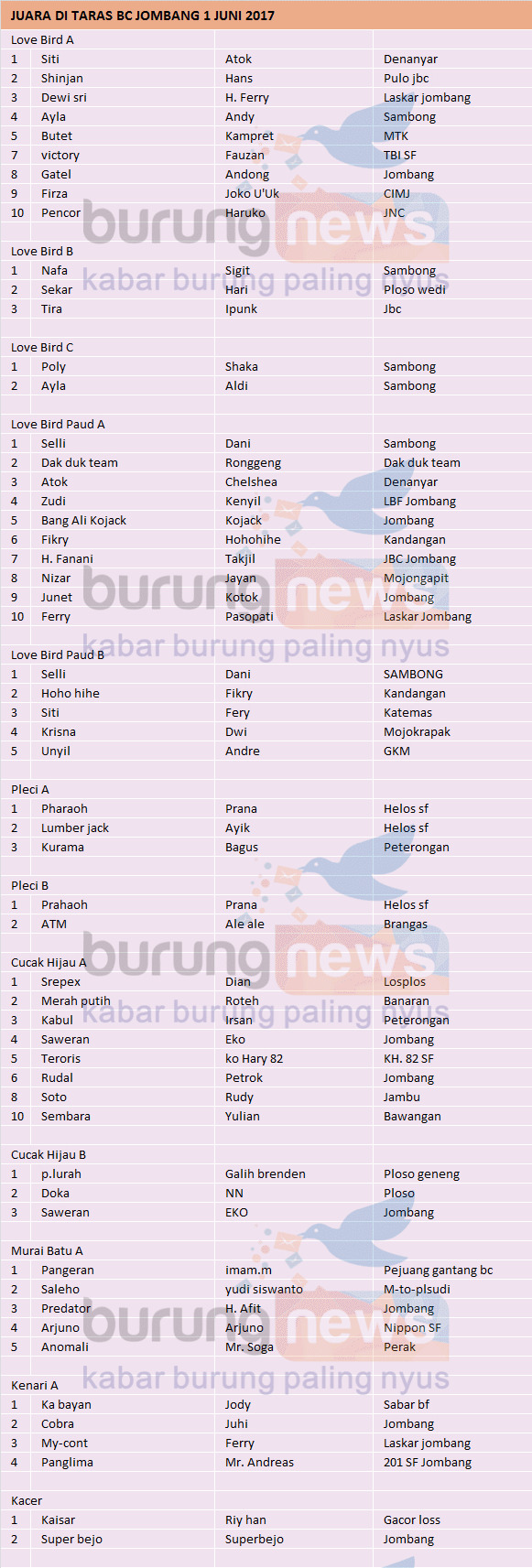 Judul : JUARA TARAS BC JOMBANG, 1 JUNI 2017