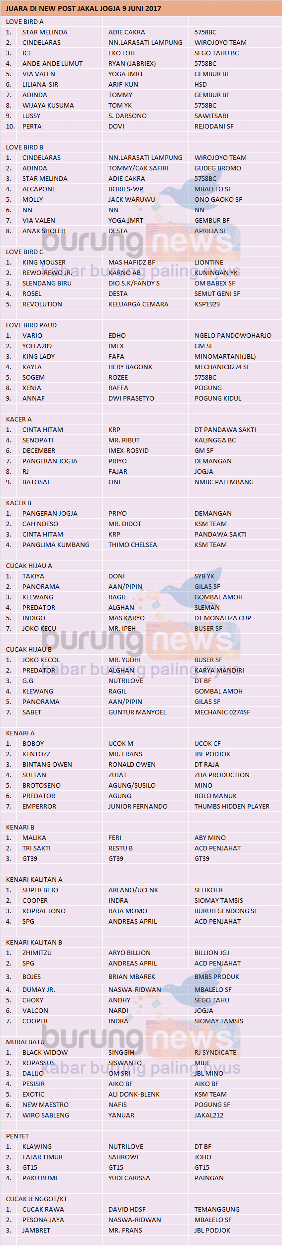 Judul : JUARA NEW POST JAKAL JOGJA, 9 JUNI 2017
