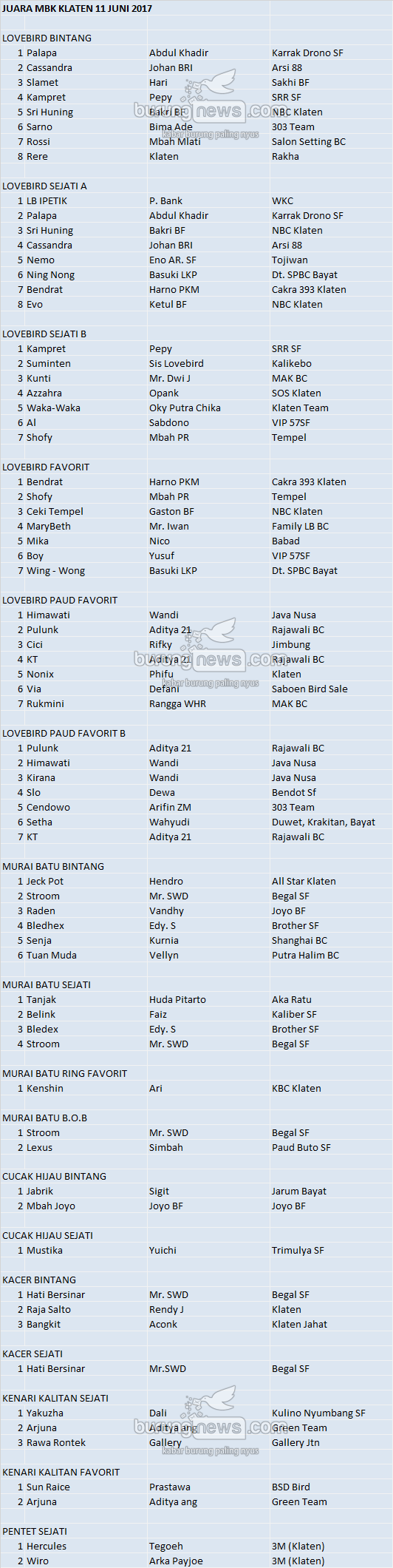 Hasil Lomba Burung