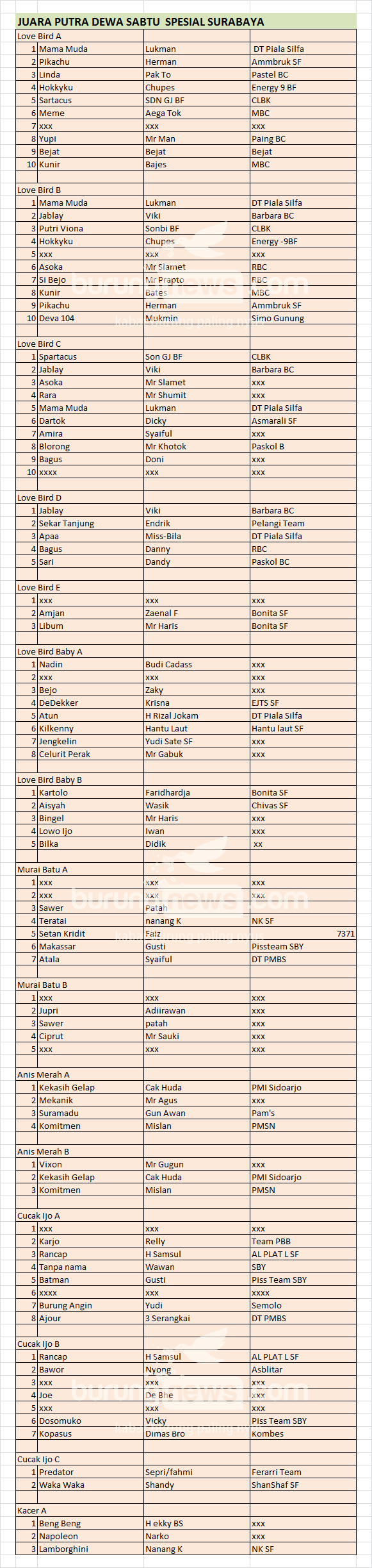 Hasil Lomba Burung