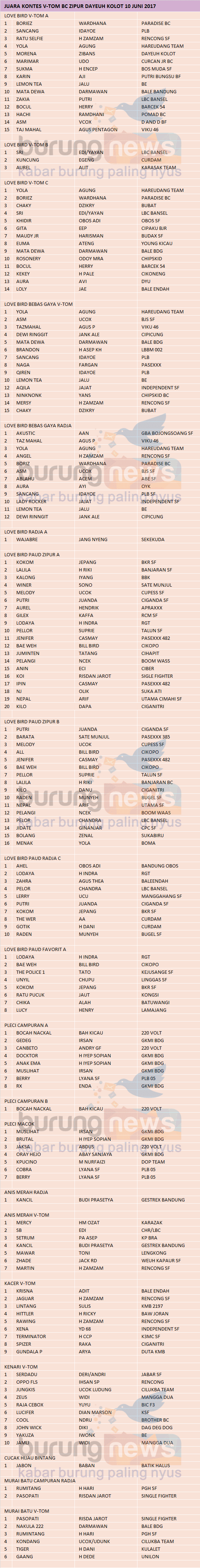 Hasil Lomba Burung