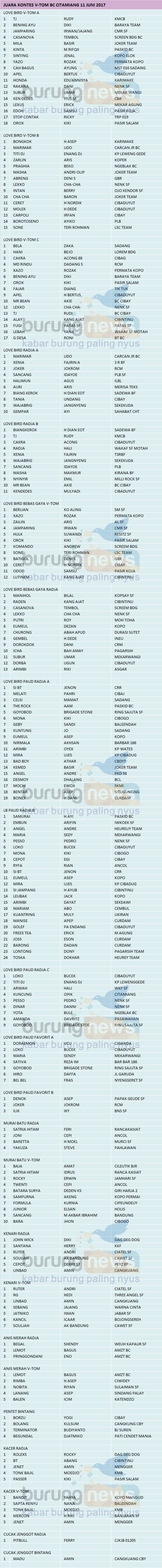 Judul : JUARA KONTES V-TOM BC CITAMIANG, 11 JUNI 2017