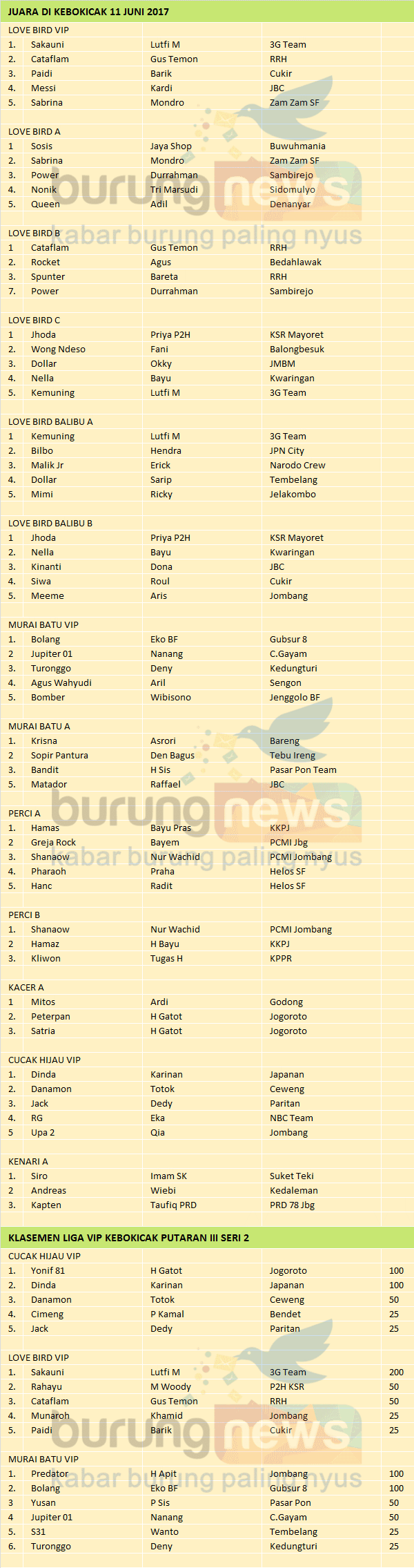 Hasil Lomba Burung