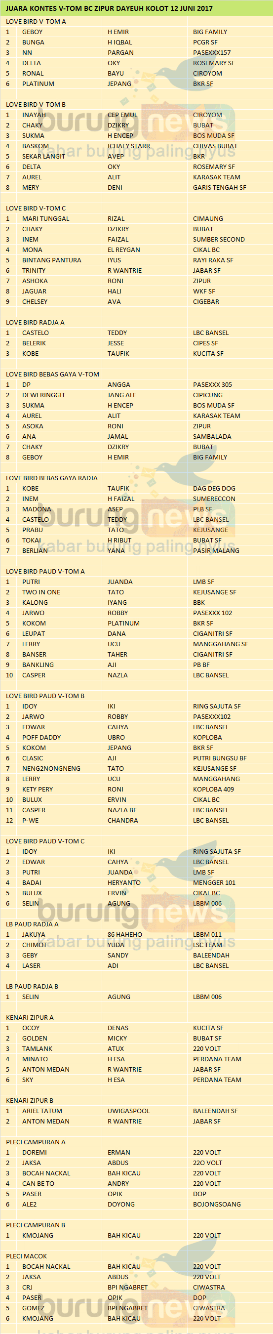 Hasil Lomba Burung