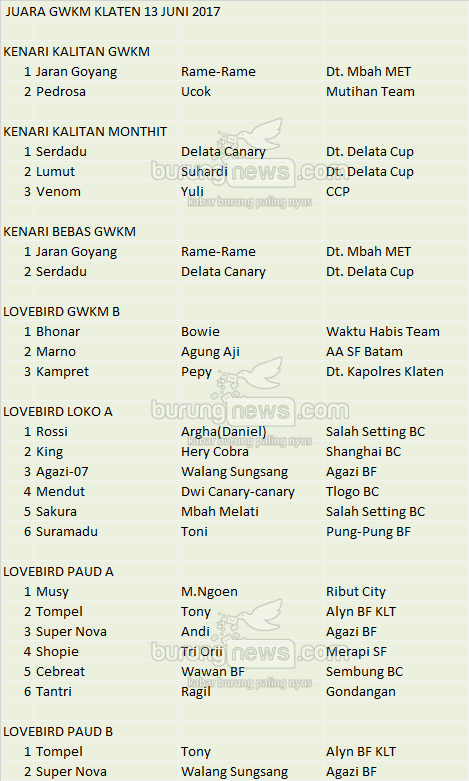 Judul : JUARA GWKM KLATEN 13 JUNI 2017