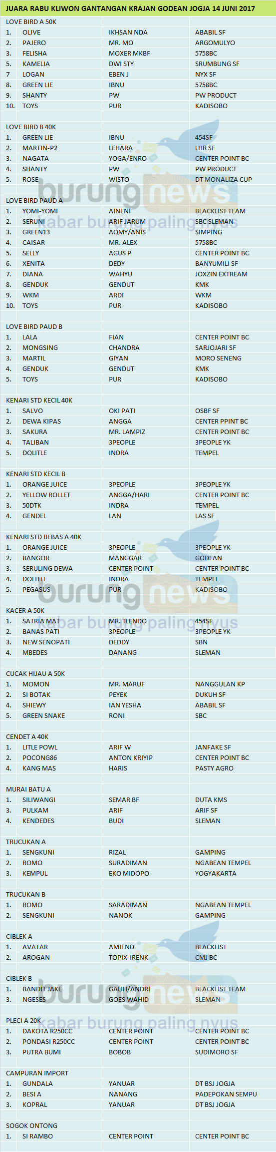 Judul : JUARA RABU KLIWON GANTANGAN KRAJAN GODEAN JOGJA, 14 JUNI 2017