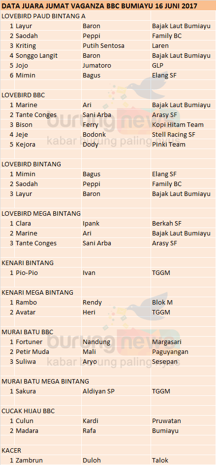 Hasil Lomba Burung