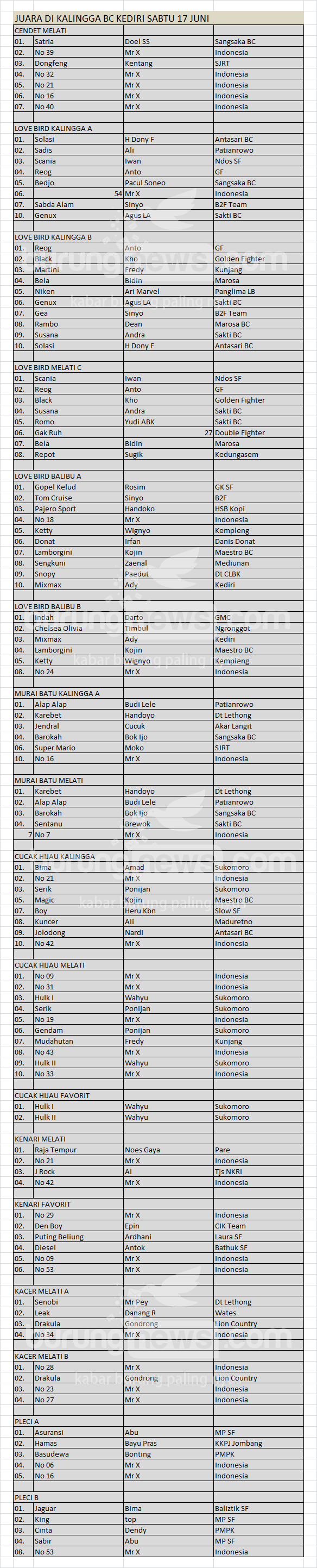 Hasil Lomba Burung