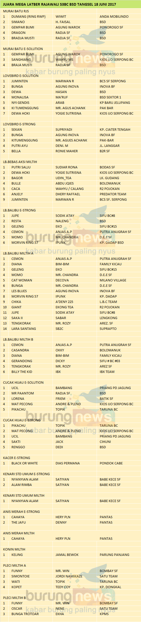 Hasil Lomba Burung
