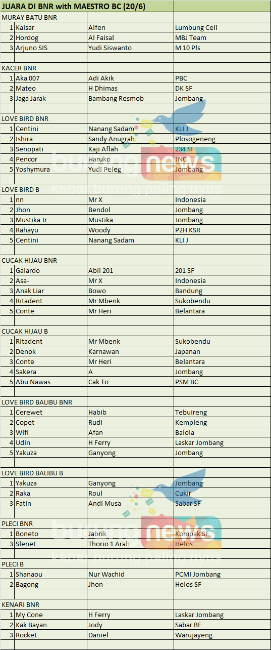 Hasil Lomba Burung