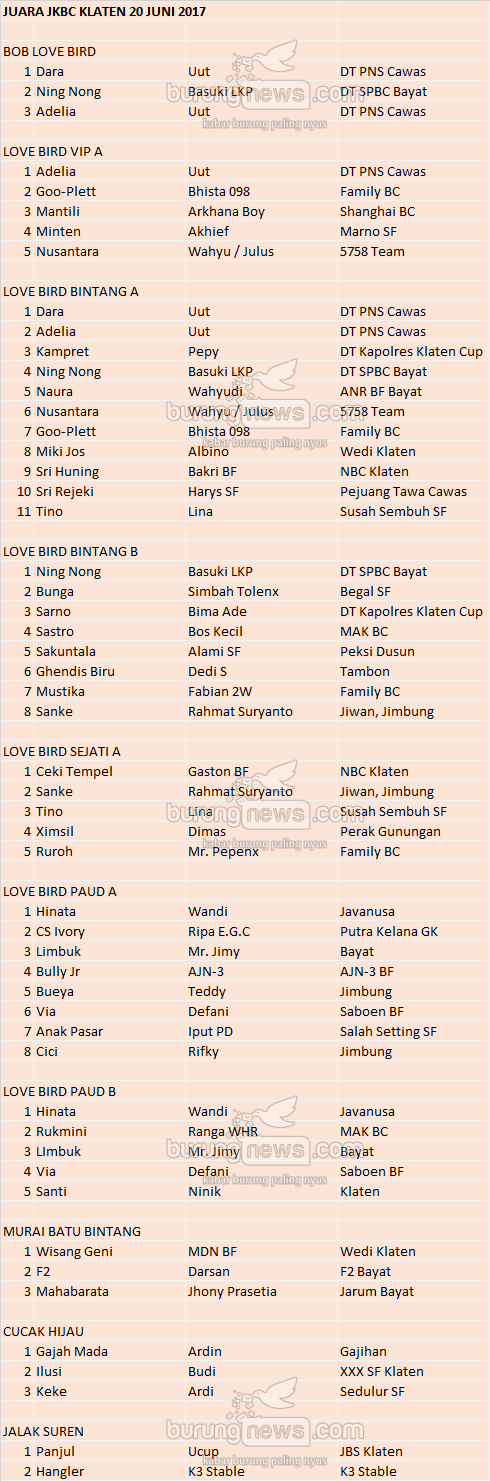 Judul : JUARA JKBC KLATEN 20 JUNI 2017