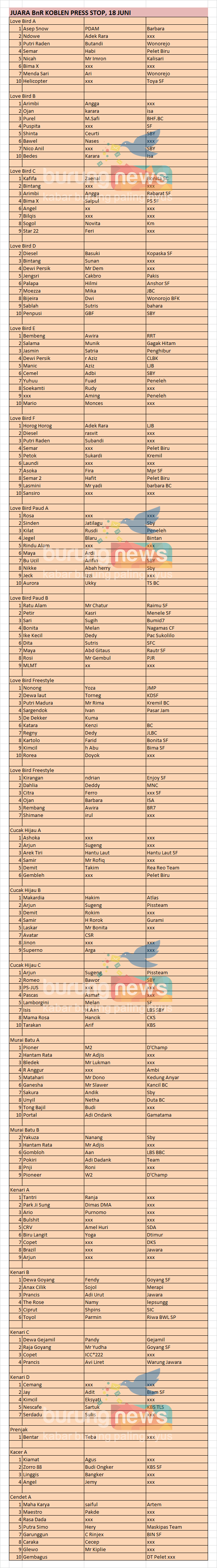 Hasil Lomba Burung