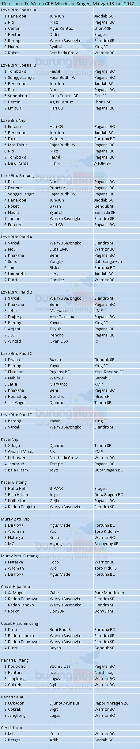 Judul : JUARA TRI WULAN GRB MONDOKAN SRAGEN, 18 JUNI 2017