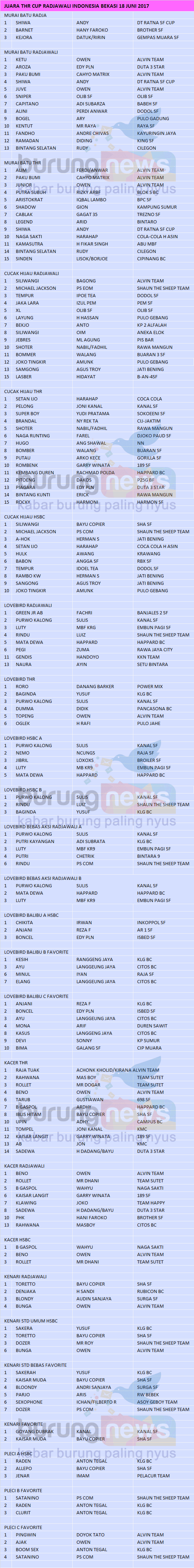 Judul : JUARA THR CUP RADJAWALI INDONESIA BEKASI, 18 JUNI 2017