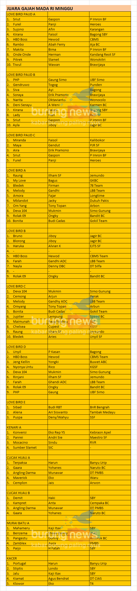 GERDUPAPAK REBORN + DATA JUARA: Aw dan Bima Kuasai Podium MB, Kacer Dikuasai Kliwon