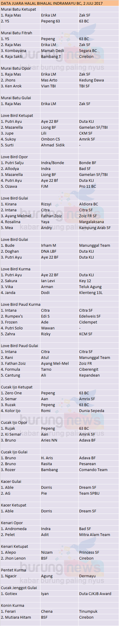 Hasil Lomba Burung