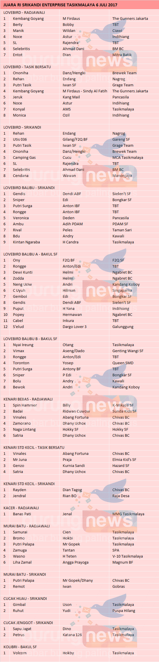 Hasil Lomba Burung
