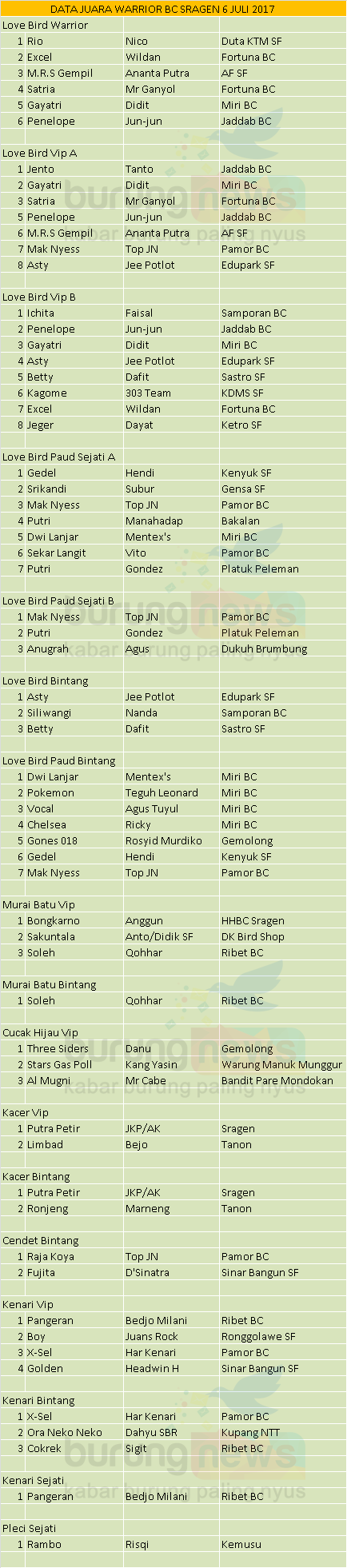 Hasil Lomba Burung