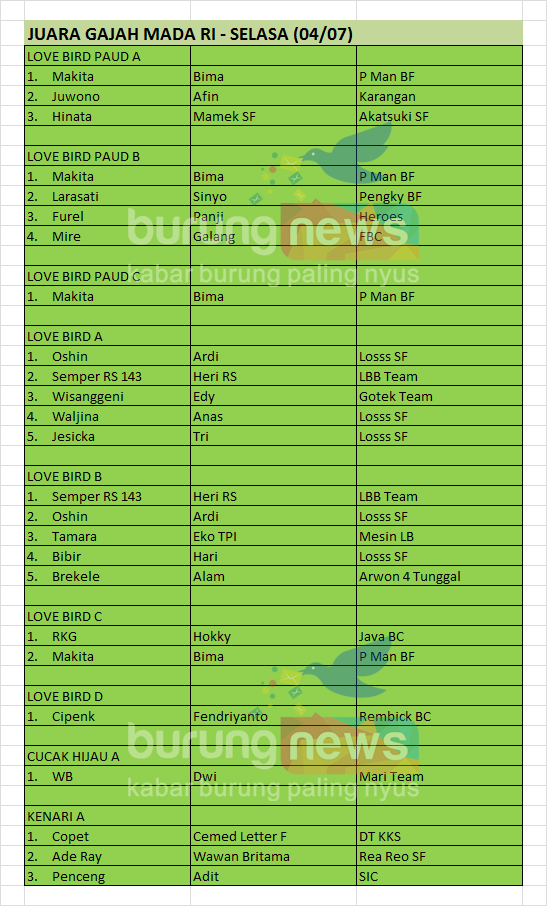 Hasil Lomba Burung