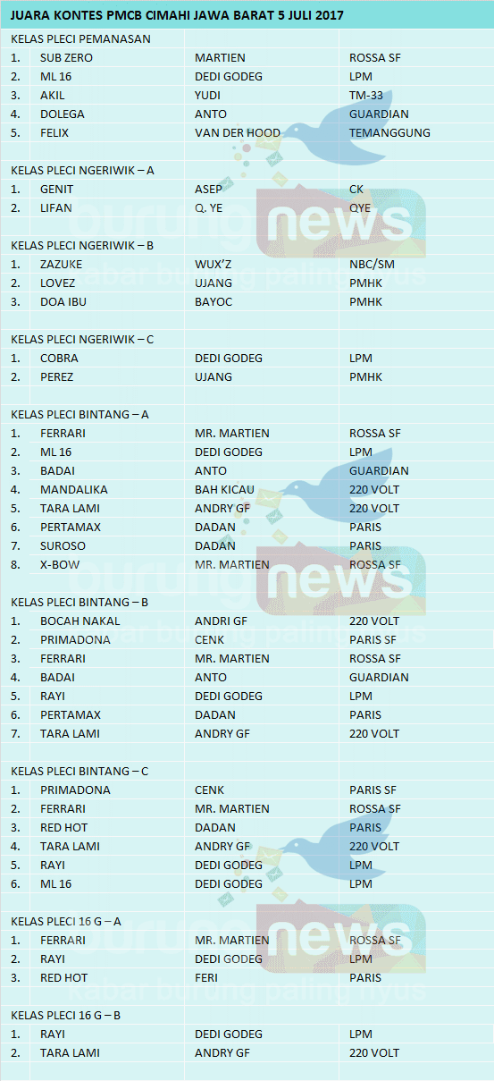 Hasil Lomba Burung