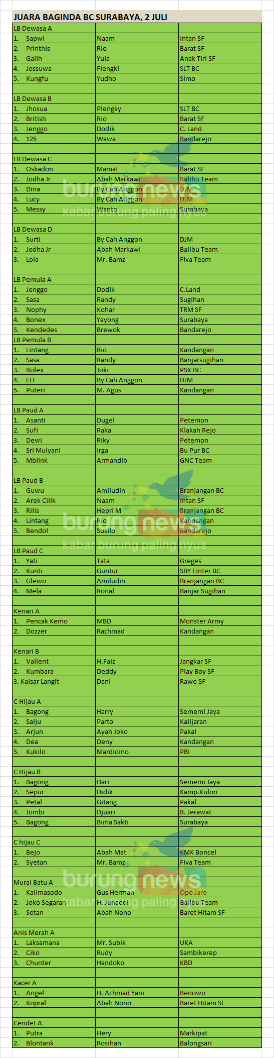 DATA JUARA MAHARAJA BENGRAH - SURABAYA (MINGGU, 29 MARET 2026)