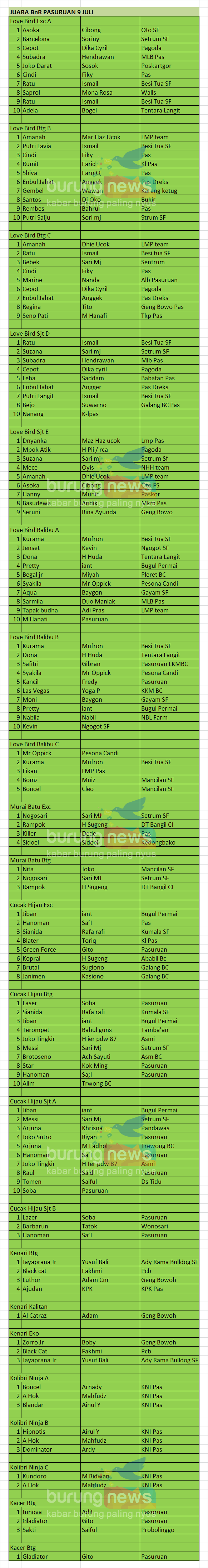 DATA JUARA GRAND LAUNCHING JOGJA BIRD ARENA: MB Sapujagad Hatrik, CH Petrok Double Winner
