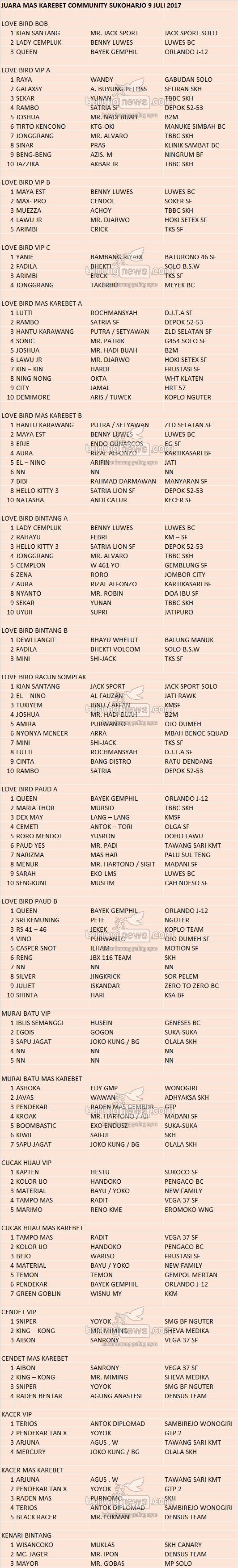 Hasil Lomba Burung