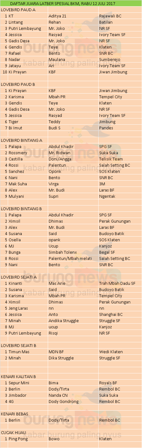 Hasil Lomba Burung