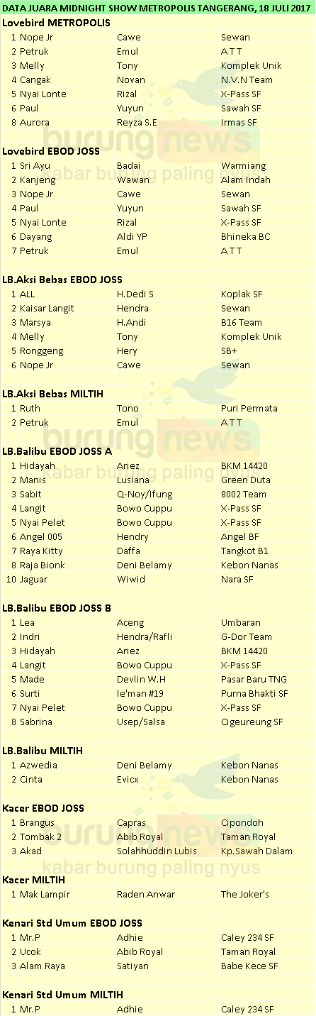 Hasil Lomba Burung