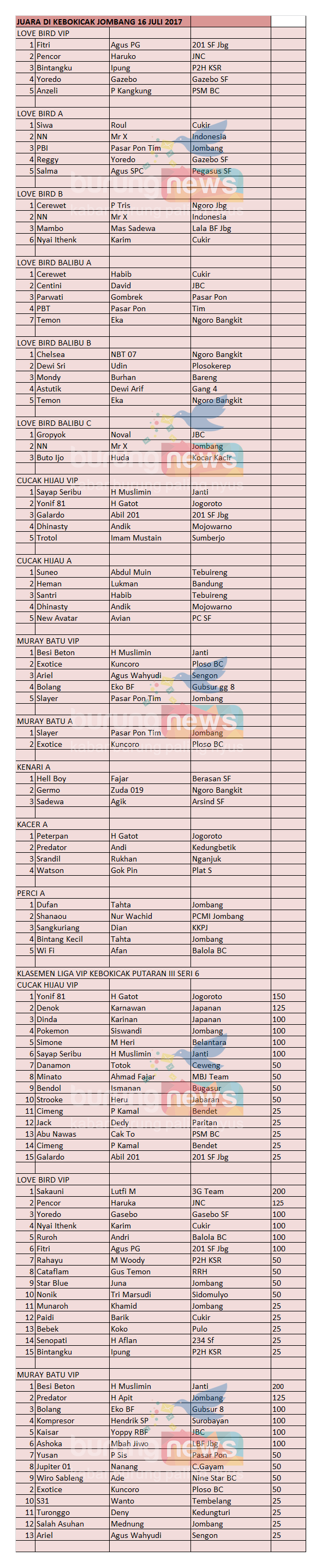 Hasil Lomba Burung