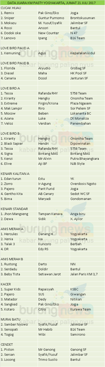 Hasil Lomba Burung