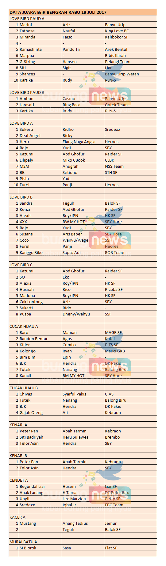 Judul : JUARA BnR BENGRAH RABU, 19 JULI 2017
