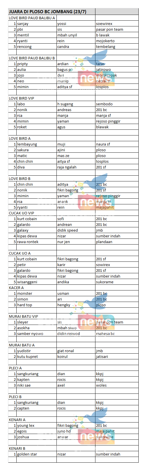 Hasil Lomba Burung