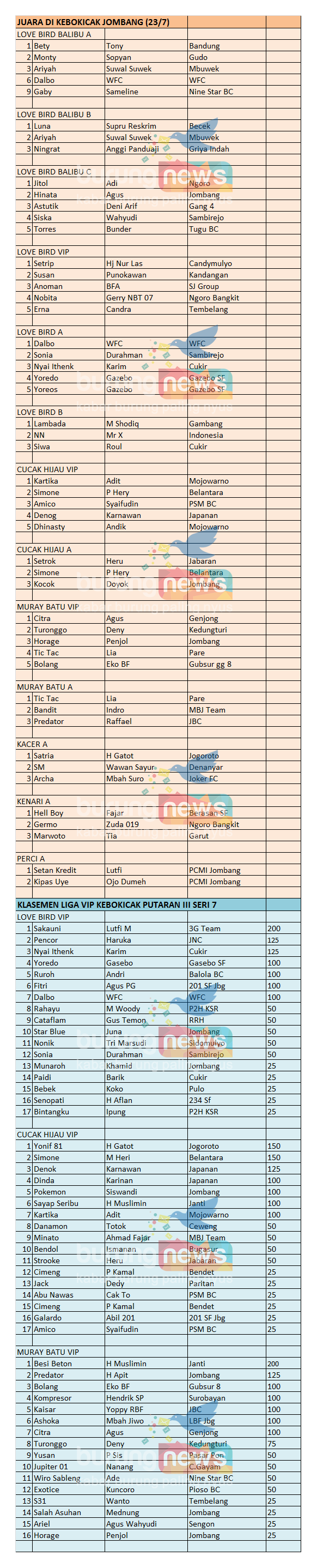 Judul : DATA JUARA KEBOKICAK BC JOMBANG, 23 JULI 2017