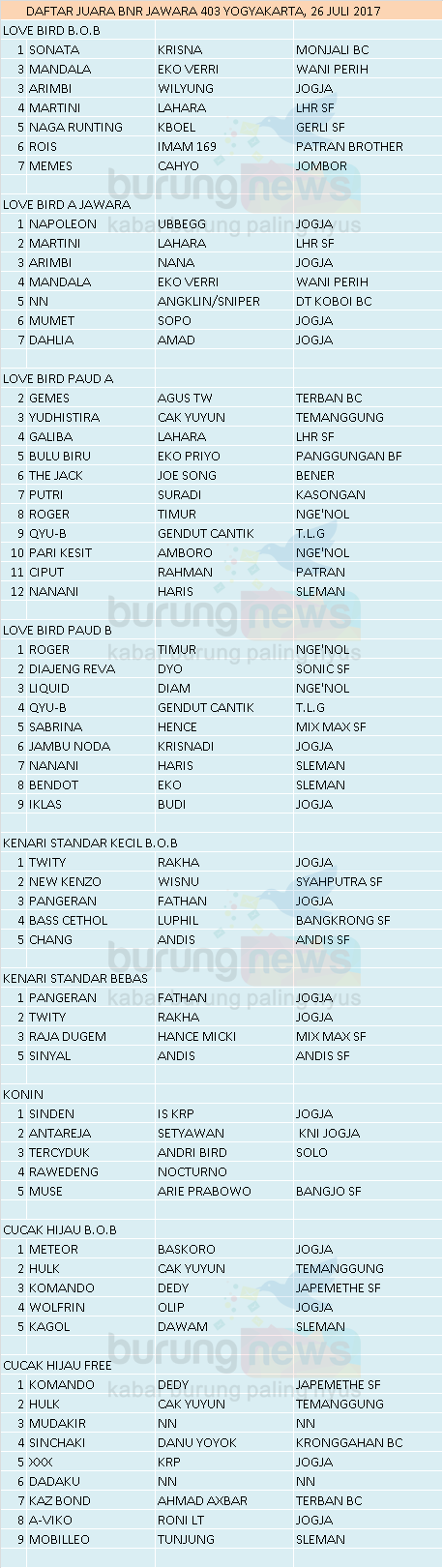 Judul : JUARA BnR 403 YOGYAKARTA, 26 JULI 2017