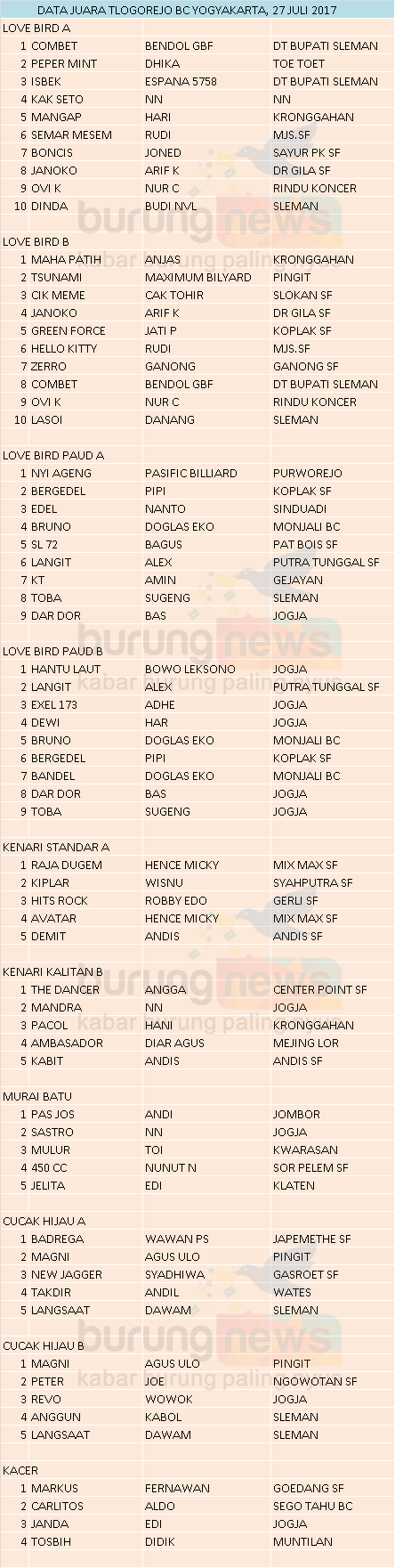 Hasil Lomba Burung