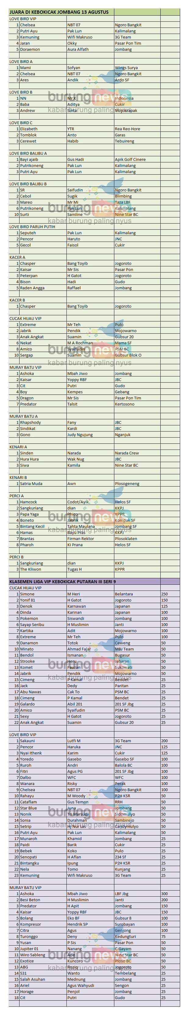 Judul : DATA JUARA KEBOKICAK BC JOMBANG 13 AGUSTUS 2017
