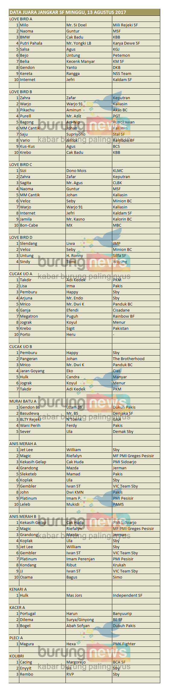 Judul : DATA JUARA JANGKAR SF MINGGU, 13 AGUSTUS 2017
